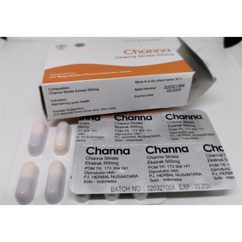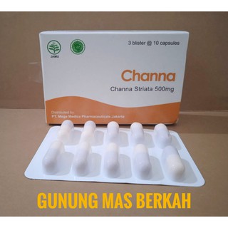 Dus 2 x 15 kapsul 500 mg. CHANNA Striata 500 mg Isi 30 Kapsul - Membantu menjaga kesehatan tubuh. Channa striatus dipercaya dapat mengobati luka secara efektif mengurangi nyeri dan memberi energi bagi orang sakit dan lansia.
