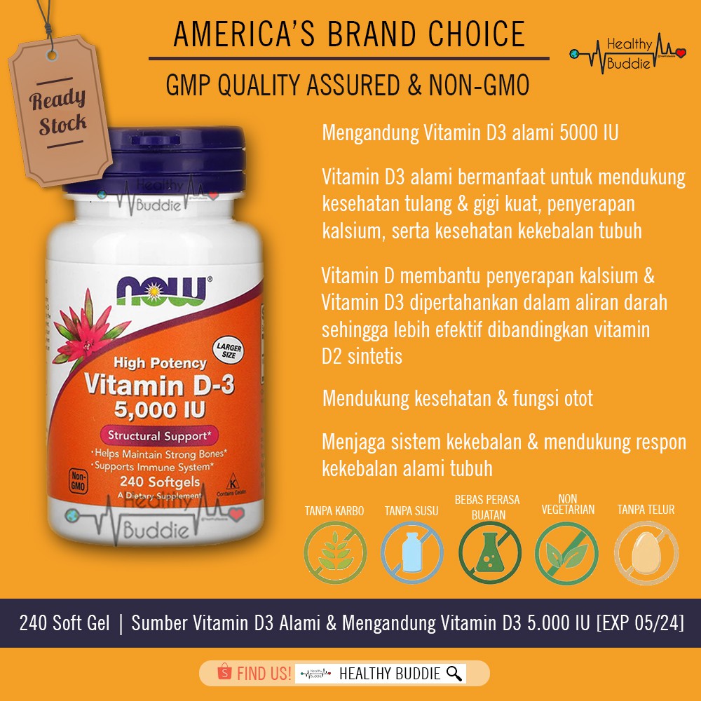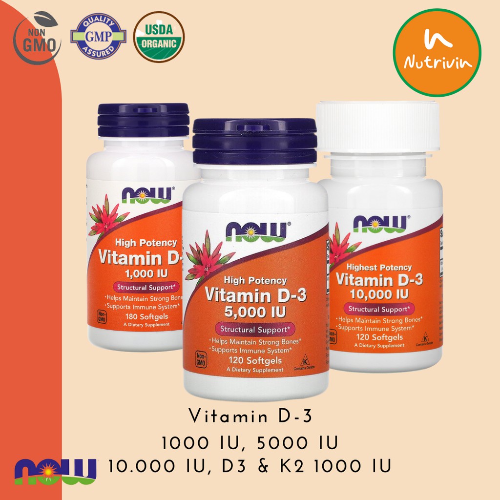 Vitamin D is one of the four fat-soluble vitamins ADE and K. Selain itu kamu juga bisa cek Harga Terbaru Vitamin D3 Now 5000 Iu dan diurutkan dari harga yang termurah. - Mensupport kesehatan tulang dan gigi - Membantu penyerapan kalsium dalam tubuh - Membantu sistem imun tubuh - Vitamin D3 lebih bagus secara kandungan dibandin D2 - Berupa softgel sehingga lebih mudah ditelan Petunjuk.