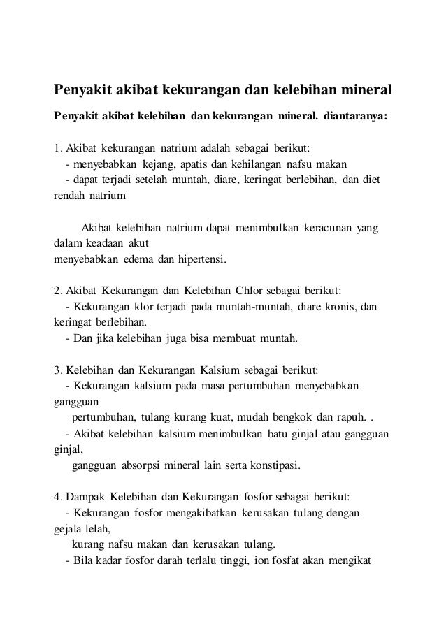 Penyakit Akibat Kekurangan Dan Kelebihan Mineral