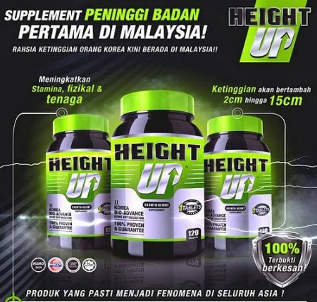 Harga vitamin height up. Limited Stock ED Juni 2022 Diformulasikan daripada bahan-bahan alami berkualitas tinggi dengan menggunakan Nano Teknologi High Quality KOREA BIO-Advanced Bone Development Techniques dan terbukti menambah ketinggian 2-15cm. Pengiriman cepat Pembayaran 100 aman. Vitamin ini diklaim dapat meninggikan badan kaum pria maupun wanita.