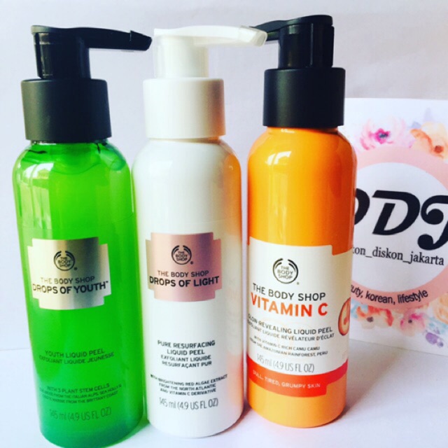 It is a gentle exfoliator which has been specially formulated to peel away dull and tired skin cells leaving skin fresh clean smooth and a healthy looking glow. Promo The Body Shop Drops Of Light Brightening Liquid Peel 145Ml di Tokopedia Promo Pengguna Baru Pasti Ori Garansi 7 Hari Cicilan 0 Kurir Instan.