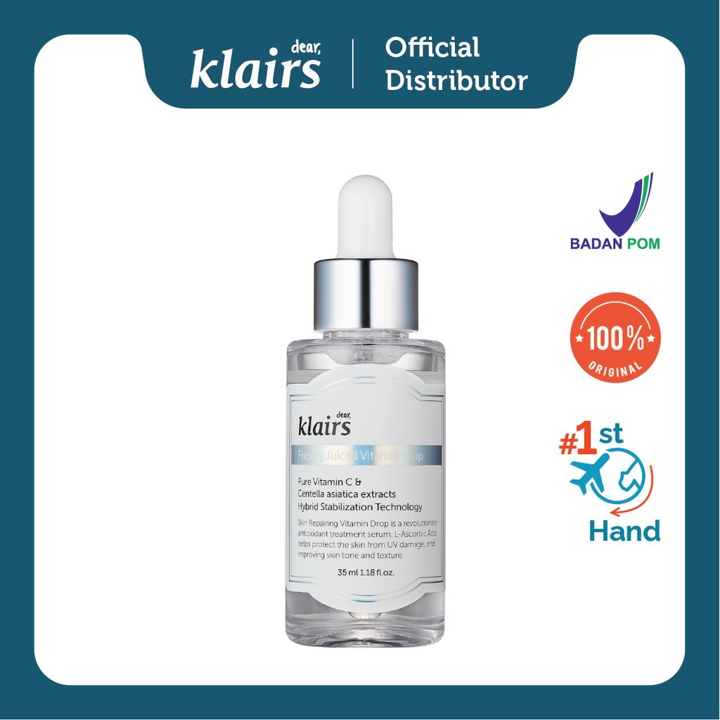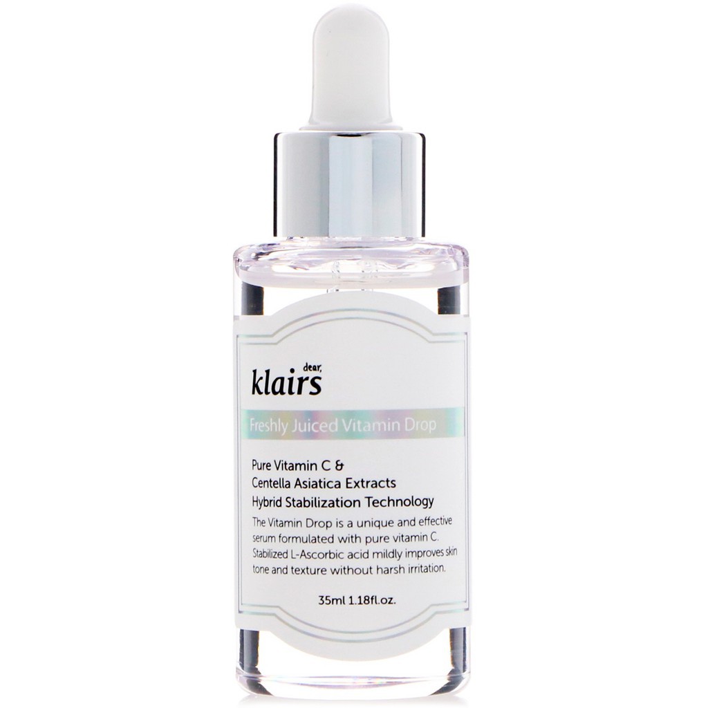 Browse from a wide range of Klairs authentic products online at low price. DEARKLAIRS Freshly Juiced Vitamin Drop 5 Hypoallergenic pure vitamin C serum 35ml 118oz a potent skin rejuvenator 2200 1864Fl Oz In Stock. KLAIRS Freshly Juiced Vitamin Drop 5 Pure Vitamin C Serum 35ml Its second ingredient is ascorbic acid aka pure Vitamin C but thanks to the latest Korean skin care technology the formula is more stable and has a longer shelf life.