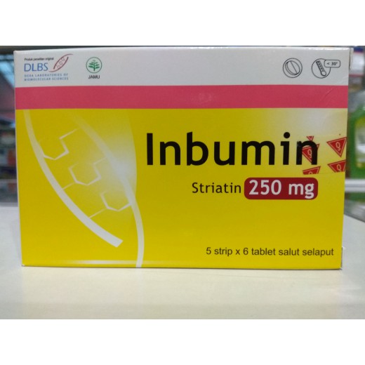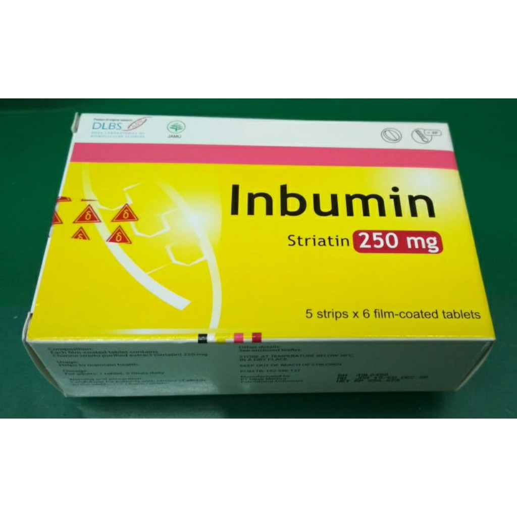 - Membantu metabolisme tubuh sehingga bagus bagi mereka yang bermasalah dengan berat badan atau sedang membentuk otot. Jual ORIGINAL INBUMIN STRIATIN 250mg 1 BOX ISI 30 FILM COATED TABLETS ASLI dengan harga Rp262000 dari toko online QUPROY JAMM MARKET Jakarta Barat. 1 tablet dua kali sehari.
