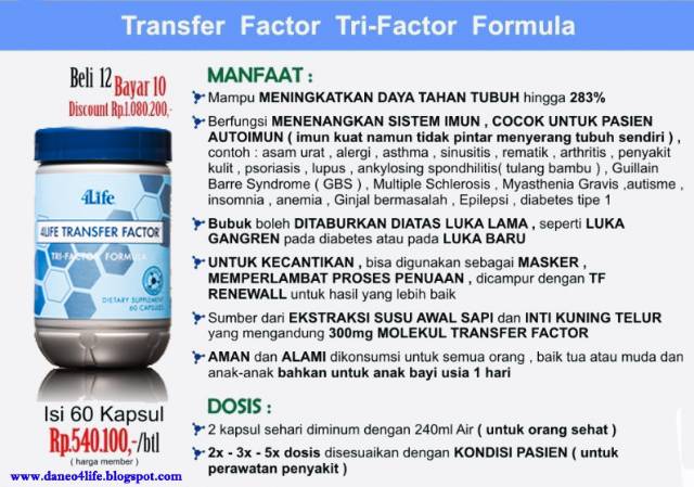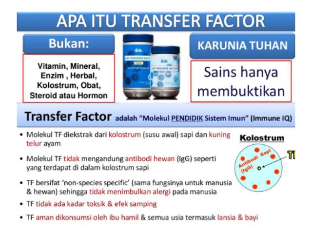 Perlu dicatat konsumsi suplemen transfer factor juga harus tetap diimbangi dengan asupan makanan yang bergizi olahraga rutin tidur cukup serta manajemen stres yang baik. 4Life transfer Factor adalah molekul unik mendidik sistem imun. Kualitas dan keamanan 4Life Transfer Factor terjamin selama produk memiliki identitas barcode resmi disisi kemasan dan langsung diambil dari gudang resmi penyimpanan 4life.