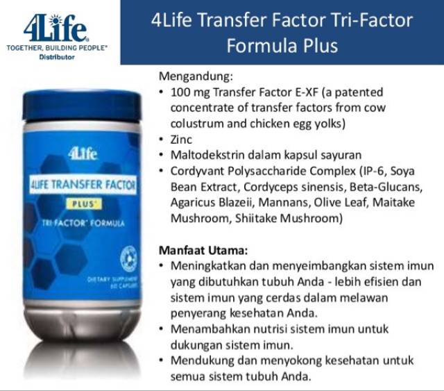 4Life Transfer Factor adalah satu satunya suplemen yang mampu mencerdaskan Sistem Imun. Ad Independent Distributor Enjoy 25 Off Shipped Direct Genuine Product Long Expiry. Dukungan utama pada sistem pertahanan tubuh Kesehatan secara umum.