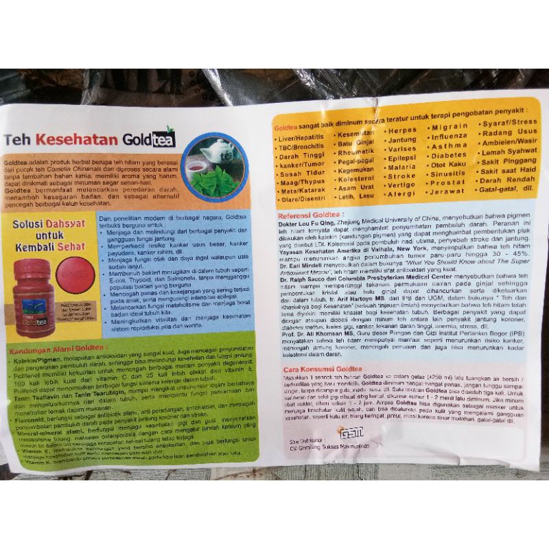 Suplemen teh hitam golden tea. Sedangkan dalam bentuk suplemen dosis katekin teh hijau berkisar dari 5-1200 mg. GFOF Golden Flowery Orange Fannings Kelas terbaik di Darjeeling untuk produksi teh celup. Cari produk Detox lainnya di Tokopedia.