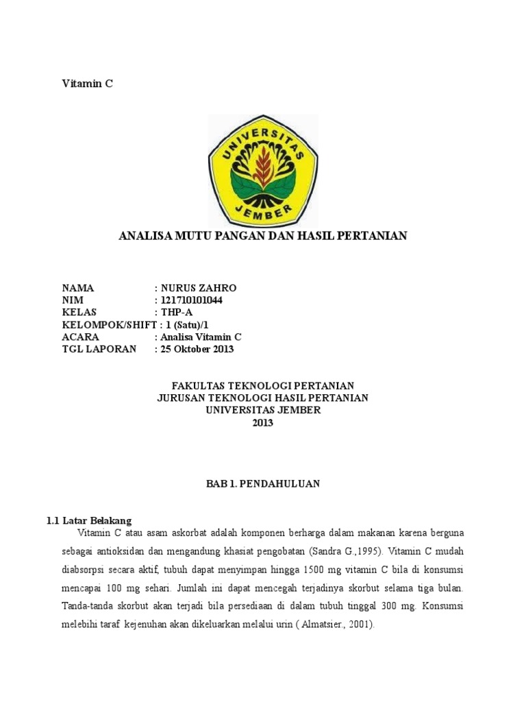 Doc Laporan Vitamin C Wangi Kristalini Academia Edu