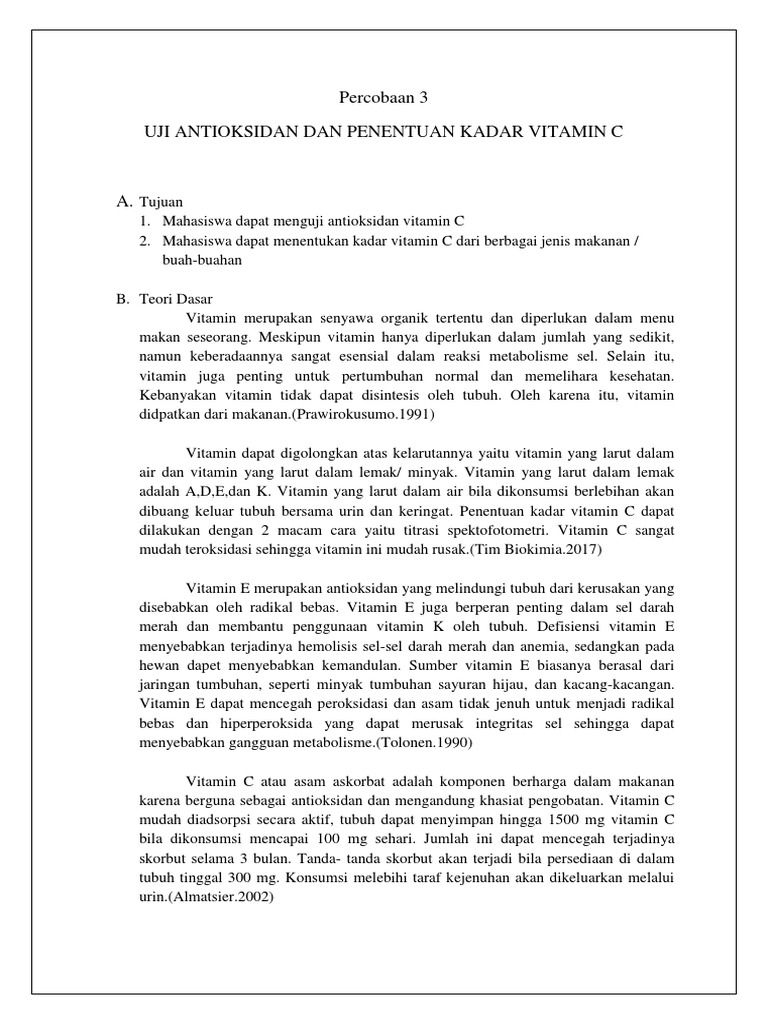 Percobaan 3 Uji Antioksidan Dan Penentuan Kadar Vitamin C