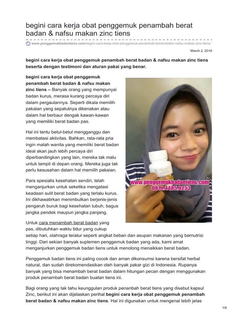 Cara Kerja Obat Penambah Berat Badan Nafsu Makan Zinc Tiens