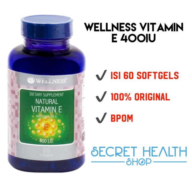 WELLNESS Natural VITAMIN E 400 IU 60 150 softgels 1pcRp187000. Deskripsi WELLNESS VITAMIN-E 400 IU 60s merupakan suplemen makanan yang diciptakan untuk memberikan nutrisi pada pada sel-sel tubuh dengan memanfaatkan kebaikan vitamin E. Synthetic vitamin E is chemically produced from petroleum byproducts.