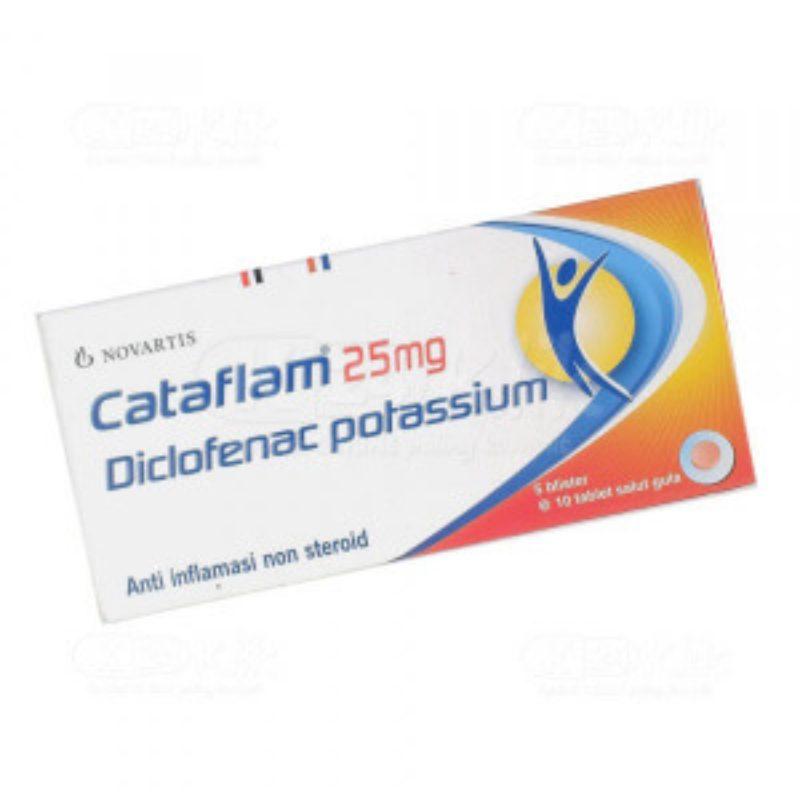 Cataflam 25 mg tab adalah obat pereda nyeri non-steroidal NSAID dengan kandungan bahan aktif kalium diklofenac. Cataflam dapat membantu meredakan keluhan-ke. Cara Kerja Dosis Efek Samping dan Harga.