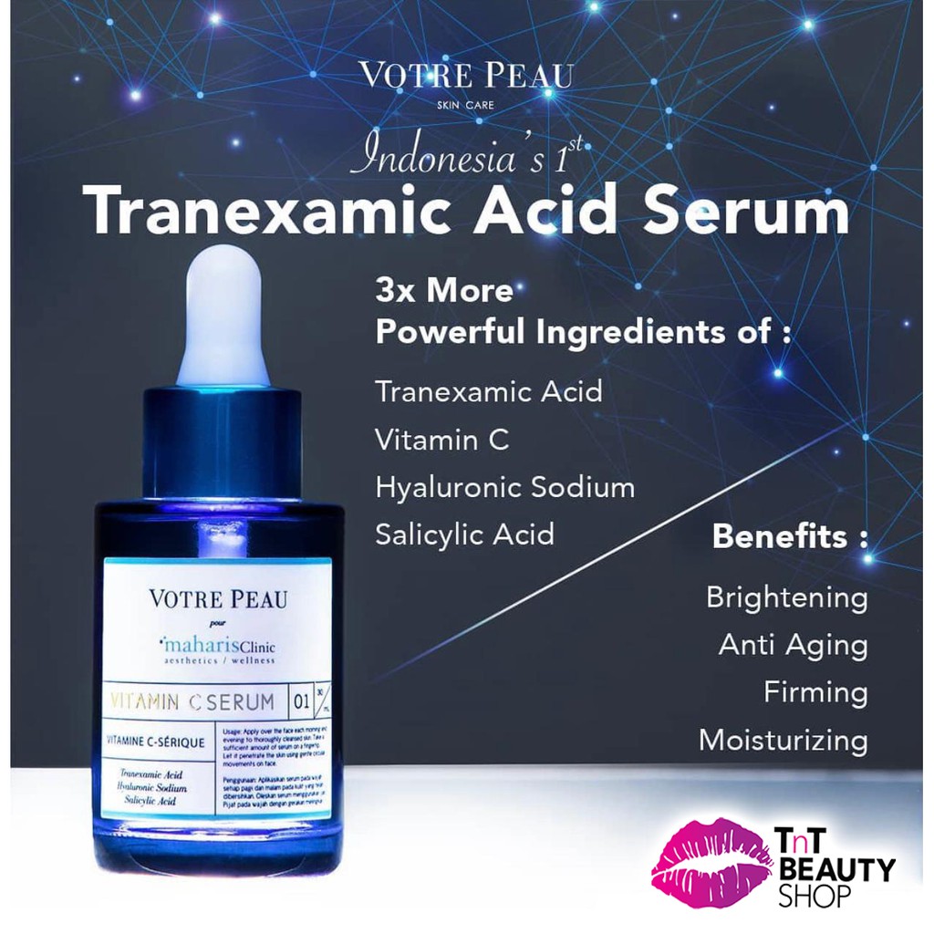 Dan lumayan menarik juga Votre Peau ini selain ingredientsnya yang gak neko2 aman buat kulit sensitif terus juga harga nya terjangkau. Tolong isi formulir dibawah ini jika kamu ingin kita informasikan ketika barang tersedia. Tranexamic Acid Hyaluronic Acid And Vitamin C Serum Pour Maharis Clinic.
