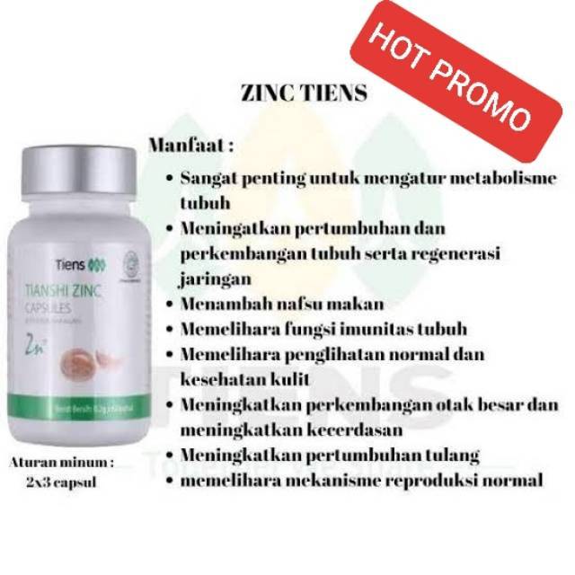Kapsul Zinc Tiens. 2 x 3-4 kapsul sebelum makan. Manfaat Kalsium Nutrient Calcium Powder Zinc Tiens Untuk Anak Dan Dewasa - Menambah tinggi badan diusia anak-anak dan remaja yang masih dalam masa pertumbuhan memang sangat baikNamun tidak menutup kecualian pada orang yang sudah dewasa.
