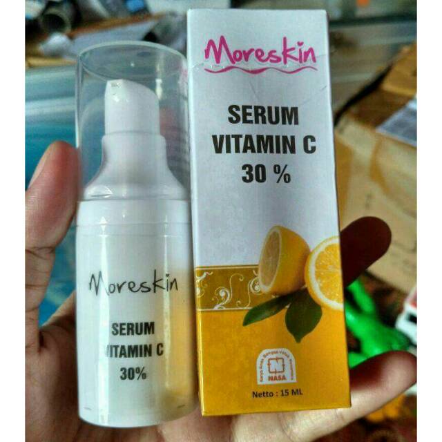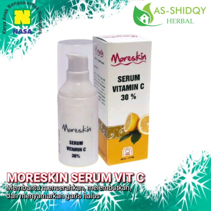 Moreskin Serum Vitamin C 30 adalah produk PT NASA berupa serum kecantikan yang diformula dengan teknologi Nano dari Switzerland dan sudah diuji secara dermatology efektif membantu mencerahkan melembutkan dan menyamarkan garis halus pada kulit. Serum Vitamin C Nasa ini mengandung vitamin C 30 yang efektif membantu mencerahkan melembutkan dan. Bagi Anda yang masih tergolong muda dengan usia dibawah 30 tahun Anda bisa mempertimbangkan memakai Moreskin Serum Vitamin C NASA untuk mendapatkan manfaat yang hampir sama.