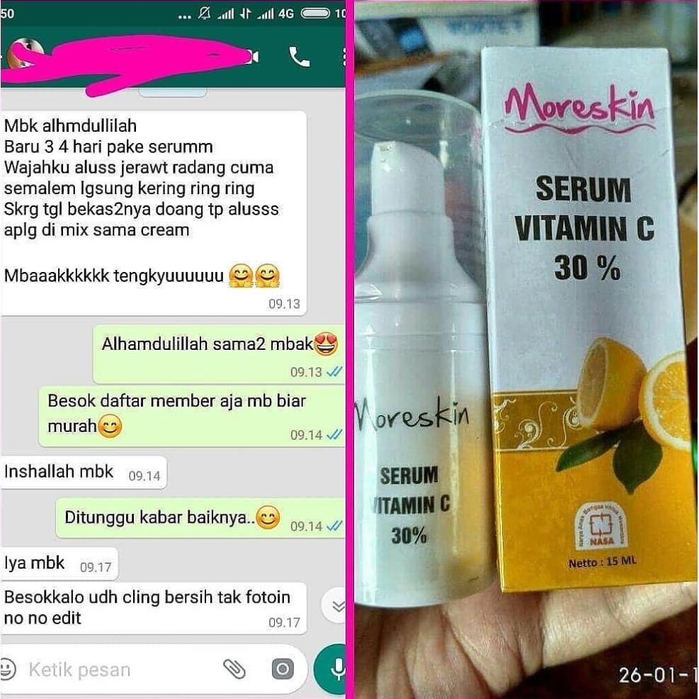 Cara Penggunaan Moreskin Serum Vitamin C. Cari produk Paket Perawatan Wajah lainnya di Tokopedia. Moreskin Serum Vitamin C 30 adalah produk kosmetik NASA desember 2017 yang diformula dengan teknologi Nano dari Switzerland dan sudah diuji secara dermatology efektif membantu mencerahkan melembutkan dan menyamarkan garis halus pada kulit.