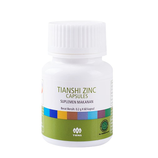 Tianshi Zinc kapsul produk tiens yang sudah terkenal dan terbukti khasiatnya. Tianshi Zinc capsules merupakan produk keluaran Tiens yang membantu merangsang nafsu makan menjadi bagus dan meningkatkan penyerapan sel. Produk ini telah sudah mendapatkan ijin dari Badan POM serta mendapatkan penghargaan dari MUI dan Sertifikasi Internasional.