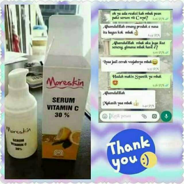 Tujuannya supaya serum vitamin C yang digunakan bisa terserap sempurna. Moreskin Serum Vitamin C 30 adalah produk serum kecantikan dari PT NASA Yogyakarta yang diformula dengan teknologi Nano dari Switzerland dan sudah diuji secara dermatology efektif membantu mencerahkan melembutkan dan menyamarkan garis halus pada kulit. Moreskin Serum Vitamin C 30 adalah serum kecantikan dari Moreskin PT Natural Nusantara yang diformula dengan teknologi Nano dari Switzerland dan sudah diuji secara dermatology efektif membantu mencerahkan melembutkan dan menyamarkan garis halus pada kulit.