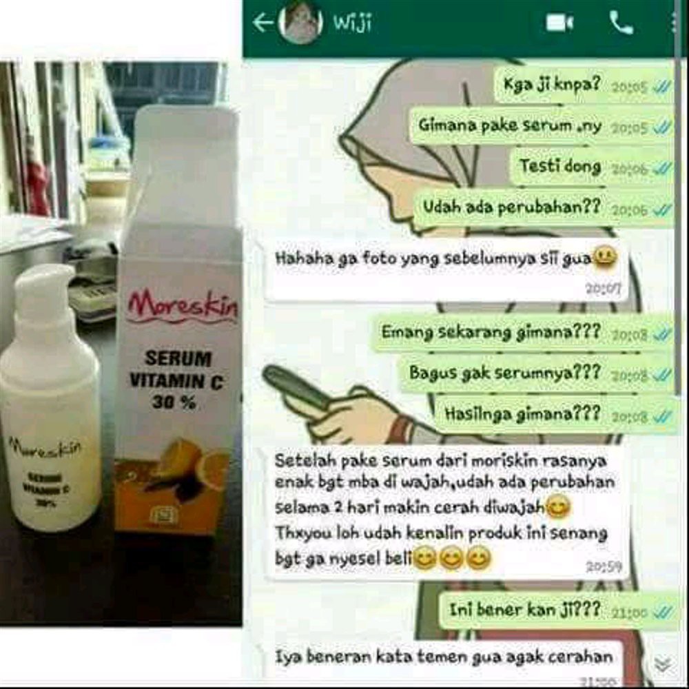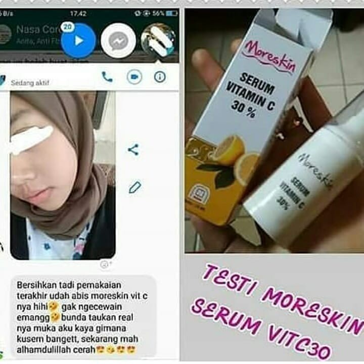 Bagi Anda yang masih tergolong muda dengan usia dibawah 30 tahun Anda bisa mempertimbangkan memakai Moreskin Serum Vitamin C NASA untuk mendapatkan manfaat yang hampir sama. Cara Pakai Moreskin Serum Vitamin C Nasa. Serum Vitamin C ini mengandung vitamin C 30 yang efektif membantu mencerahkan melembutkan dan menyamarkan garis halus pada kulit.