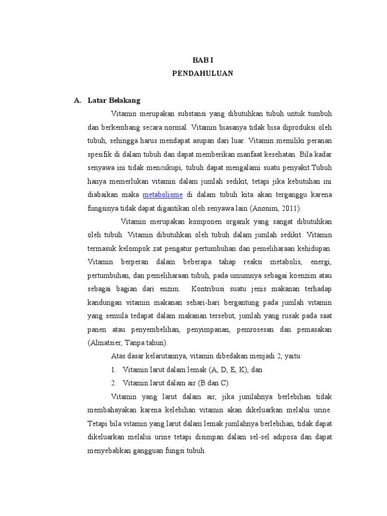 Bab I Pendahuluan A Latar Belakang Vitamin A Adalah Vitamin