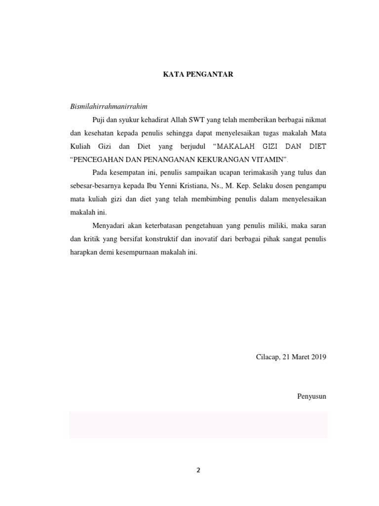 Makalah Gizi Diet Pencegahan Dan Penanganan Kekurangan Vitamin