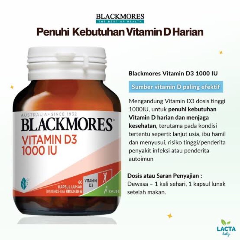 5 Rekomendasi dan Manfaat Vitamin Blackmores dari SehatQ August 23 2021 by usaha Di keadaan seperti sekarang ini kondisi daya tahan tubuh harus sangat diperhatikan hal itu dikarenakan daya tahan tubuh yang prima menjadi salah satu cara yang bisa membuat anda terhindar dari berbagai jenis penyakit yang dapat menyerang tubuh. Recent studies have suggested that vitamin D is involved in innate immunity. Suplemen vitamin D dari Blackmores mengandung vitamin D dalam dosis yang lebih tinggi dari kebanyakan suplemen yang lain yaitu 1000 IU.