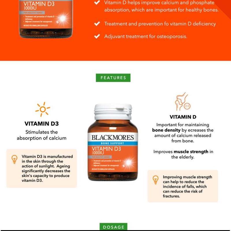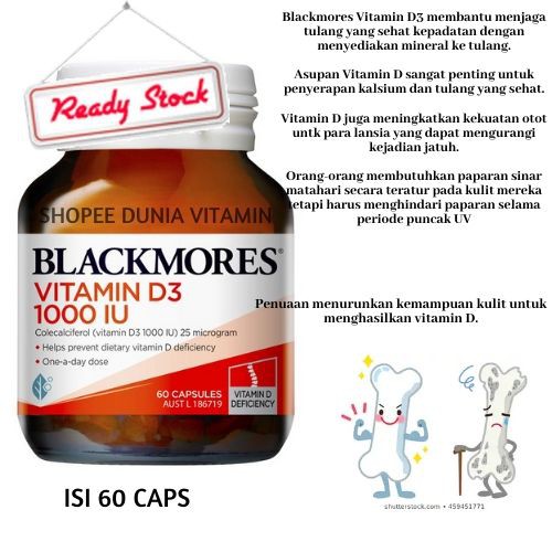 Huge variety of supplement deals. Blackmores Vitamin D3 1000 IU dengan Vitamin D3 dosis tinggu bantu penuhi kebutuhan vitamin D harian. Suplemen Vitamin D3 ialah produk dari Blackmores.