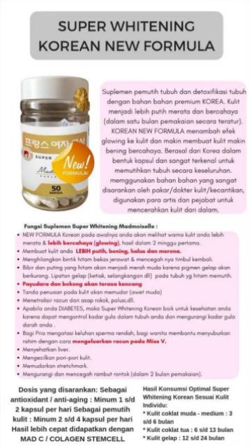 Suplemen Pemutih Kulit Korean Whitening Madmoisha Shopee Indonesia